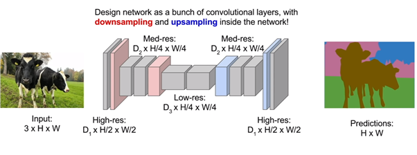 그래서 나온 아이디어가 Deconvolution 입니다. 모든 픽셀들을 한번에 예측하되, 사이즈를 안줄이면 문제점이 존재하므로, 줄였다가 다시 복원시키면 어떨까? 하는 아이디어를 현실화한 것입니다.