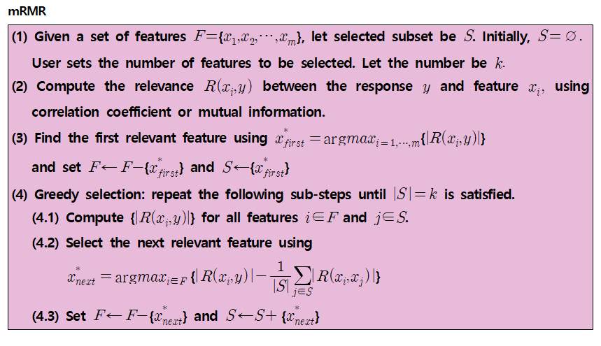 mRMR의 알고리즘을 자세하게 들여다보도록 하겠습니다.