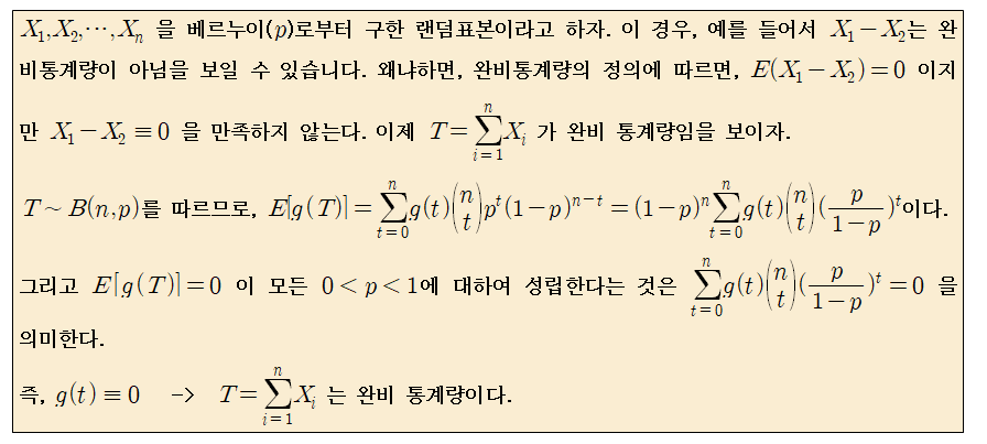 베르누이 분포의 p에 대한 추정량으로써 T 가 완비충분통계량인것을 보였었죠?