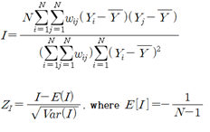 그리고 Z 값이 통계량이 되며, Z 검정을 통해서 전역 공간 패턴의 통계적 유의성을 판단하게 됩니다.