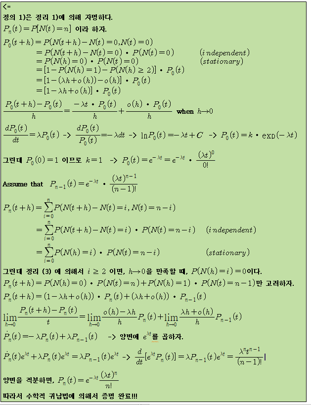 다음으로 포아송 과정의 정의를 다르게 표현할 수 있는 정리에 대해서 알아보도록 합시다.