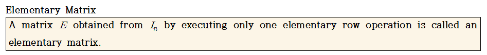 이번 포스팅에서는 우선 Elementary Matrix 에 대해서 짚고 넘어가도록 하겠습니다.