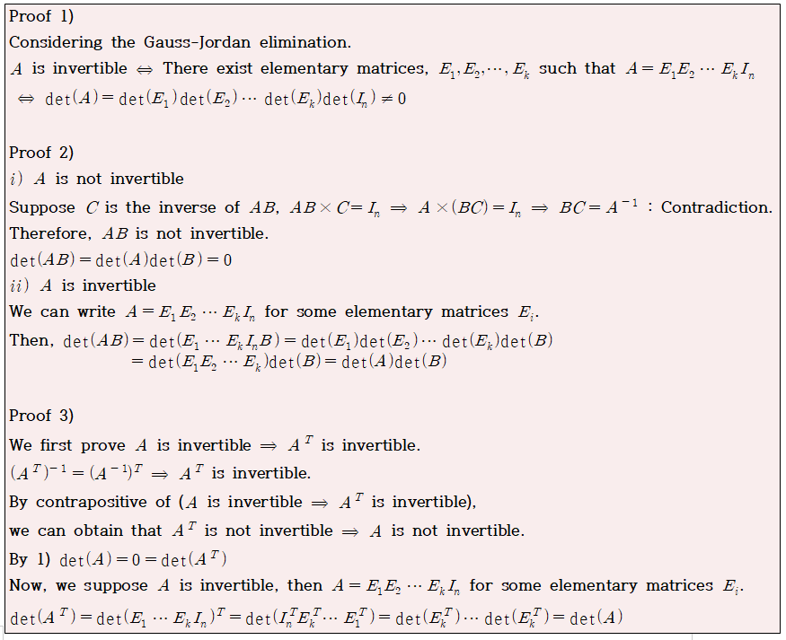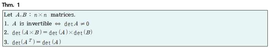 안녕하세요. 이번 포스팅에서는 Determinant와 관련된 중요한 성질들에 대해서 배워보도록 하겠습니다.