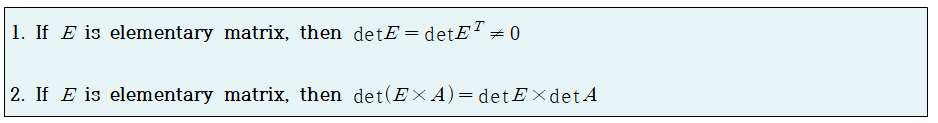 1번 성질은 Elementary matrix의 행렬식은 0이 아니라는 것입니다.