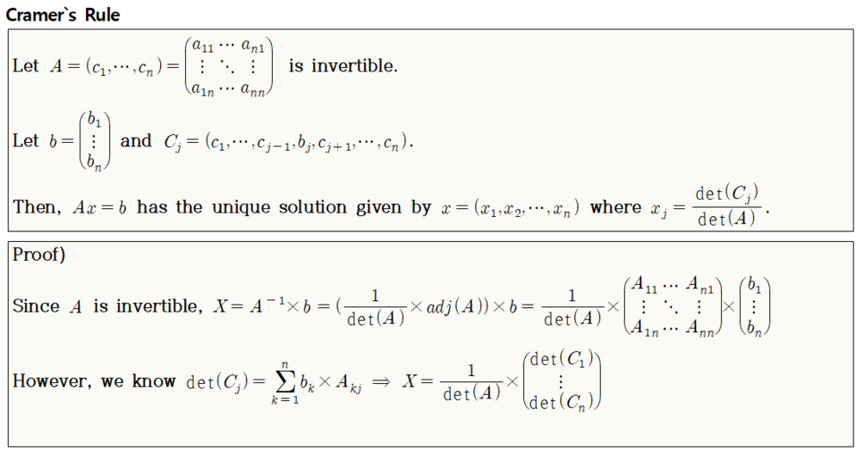 안녕하세요. 이번 포스팅에서는 Cramer`s rule에 대해서 배워보도록 하겠습니다.