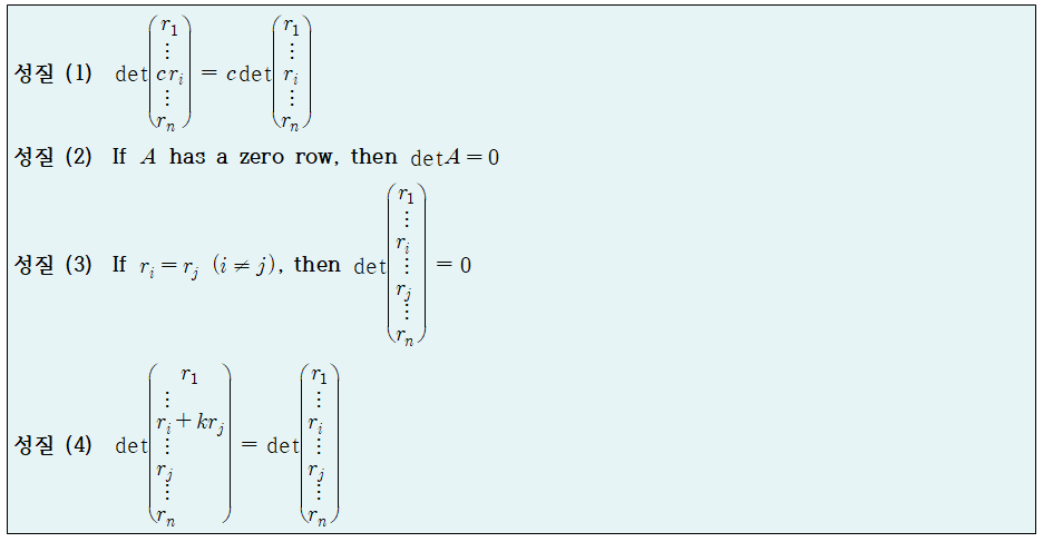 이 부분을 알기 위해서, 9번째 포스팅에 있던 Determinant의 성질을 가져와보았습니다.