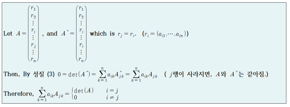 이처럼 i와 j가 다르면 행렬식은 0이됩니다.
