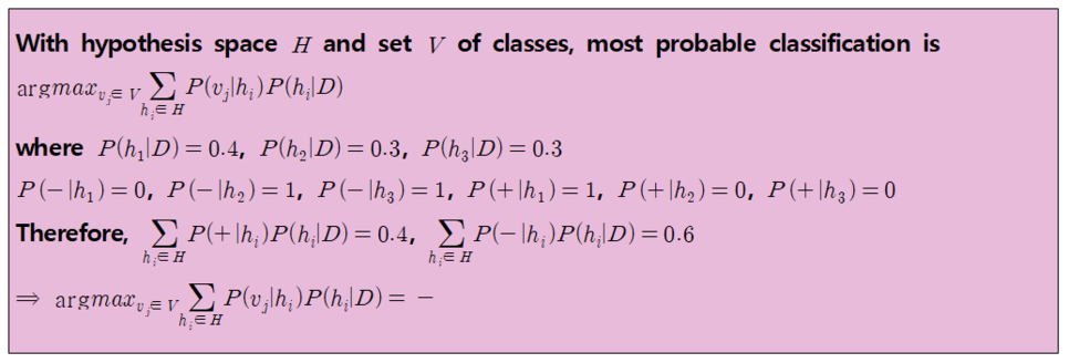 가설 공간 H에서 데이터 D가 주어졌을 때, 새로운 관측값 x의 class를 정해야 하는 분류문제가 있다고 생각해봅시다.
