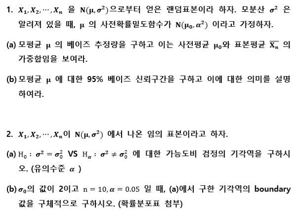 5) 다른 대학교 수리 통계 수업 기출문제 5회분