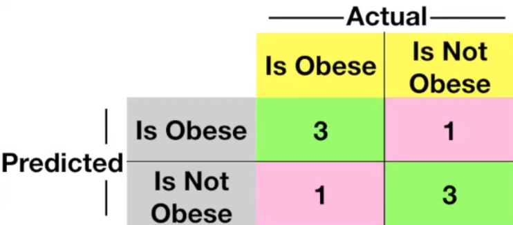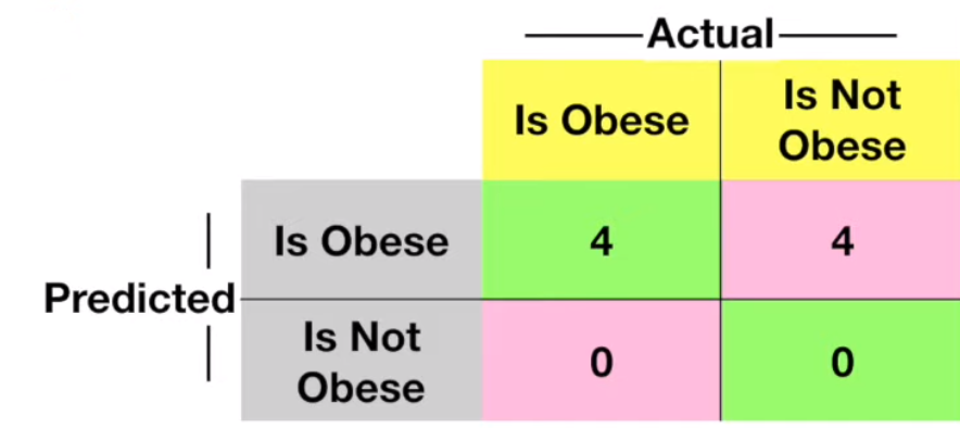 0일 때는 모든 관측치를 Obese로 예측하게 됩니다.