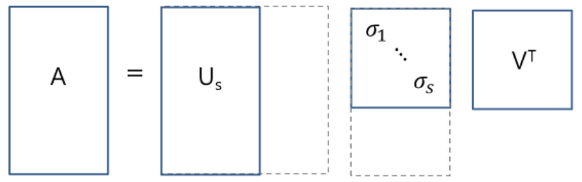 위 그림은 U의 열벡터를 S개 만 사용하는 Thin SVD 입니다.