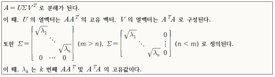 AAT 와 ATA 는 대칭행렬이기 때문에 항상 고유값 분해가 가능합니다.