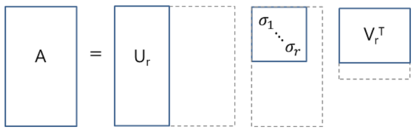 위 그림은 고유값이 0이 아닌 경우도 제거한 truncated SVD 입니다.
