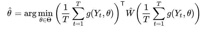 이 때, W는 positive-definite weighting matrix로, moment를 가중합 시키는 행렬이다.