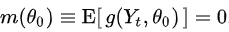 moment condition이란 관측치 Y와 모수 theta에 대한 함수로써, 기댓값을 취하였을 때, 0을 가지는 조건을 만족한다.
