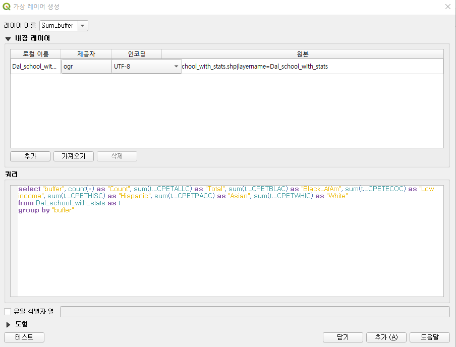 밑에 추가를 눌러주시면 레이어 텝에 "Sum buffer"가 추가되었습니다.