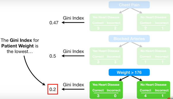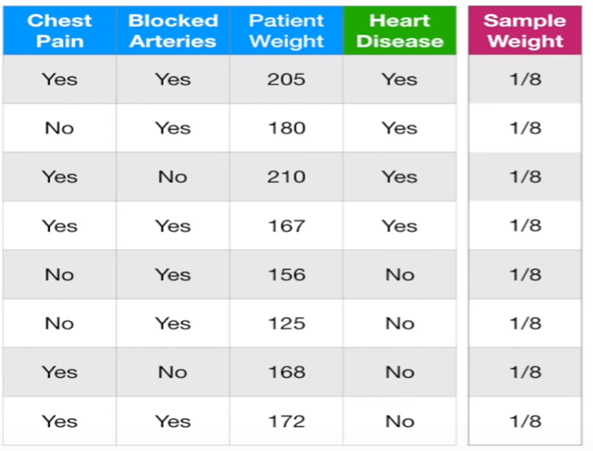 총 3개의 변수 Chest Pain, Blocked Arteries, Patient Weight로 Heart Disease를 예측하는 Task가 있다고 합시다.