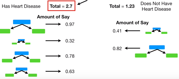 그러면 각 경우에 대해서 Amount say를 더해줍니다.