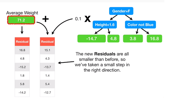 ▶ 이제 예측 값이 업데이트가 되는데, overfitting을 막기 위해, learning rate가 곱해진다.