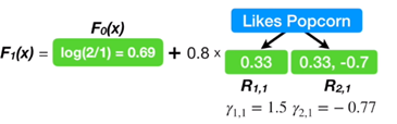▶ 이제 예측 값이 업데이트가 되는데, Overfitting을 막기 위해 Learning rate가 가중된다.