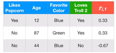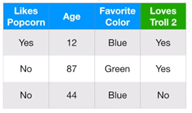 위의 데이터에 대해서 3가지 input attribute로 Love troll 2를 예측하고자 한다.