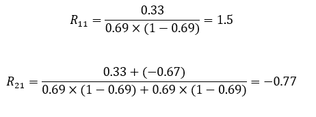 ▶ 예를 들어서, R(1,1)에 속한 관측치는 0.69 + 0.8 X 1.5 = 1.89 로 업데이트가 된다.