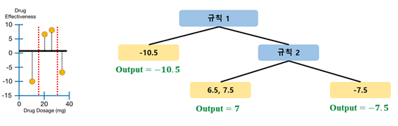 반면에 Gamma를 150으로 정의하면 모든 규칙이 Prune되고, 4개의 오차는 하나의 예측 값으로 예측된다.