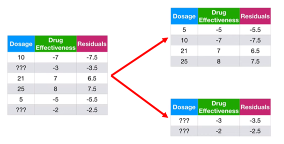 이 때, 규칙은 Missing value가 없는 데이터 셋에서 찾는다.