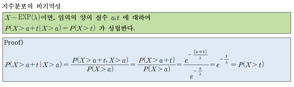 마지막으로, 지수분포는 기하분포와 같은 성질을 가지고 있습니다.