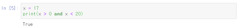 위의 경우, 두 조건을 모두 만족하므로, True 값을 출력합니다.