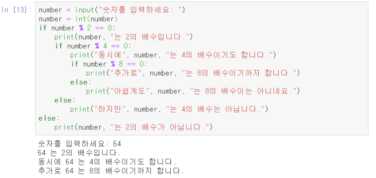 위 코드는 숫자를 입력하여, 조건문을 만족시키는지를 살펴봅니다.