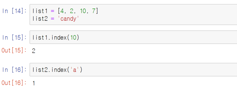 index 함수는 입력인자가 list에서 어느 위치에 존재하는지를 반환합니다.