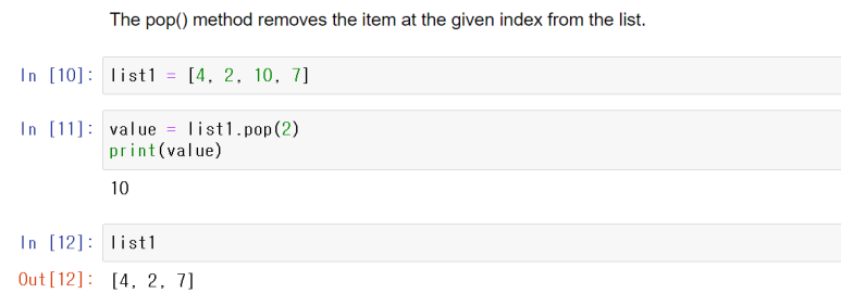 pop 인자에 위치를 반환하면, 그 위치에 있던 숫자가 출력되며, 리스트에서는 그 숫자가 사라집니다.