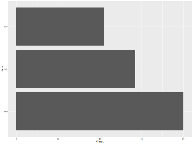 df <- data.frame(Name = c("JW", "HJ", "SY"), Weight = c(57, 80, 42))