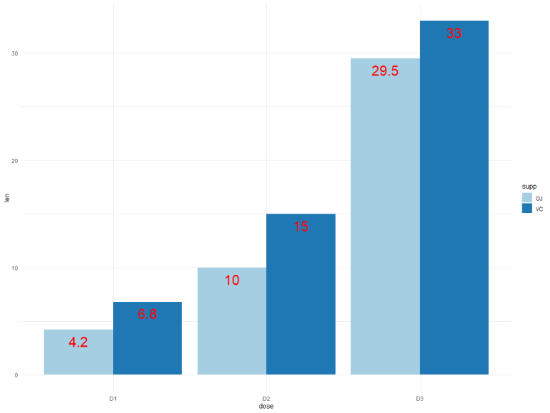geom_text로 dodge 된 그래프에 labeling을 진행할 수 있습니다.
