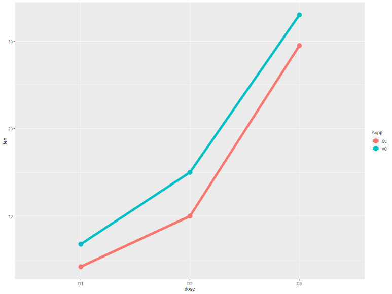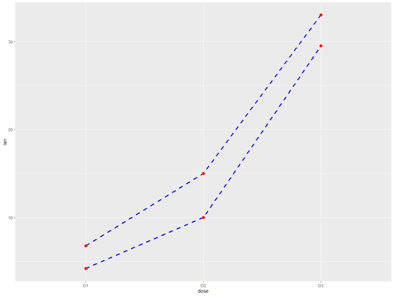 p<-ggplot(df2, aes(x=dose, y=len, group=supp)) +