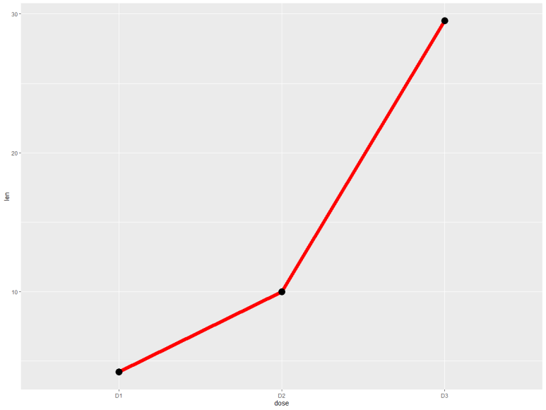 ggplot(data=df, aes(x=dose, y=len, group=1)) +