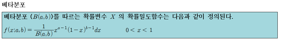 베타함수에 대해 배웠으니 이제 베타분포를 정의하도록 하겠습니다.