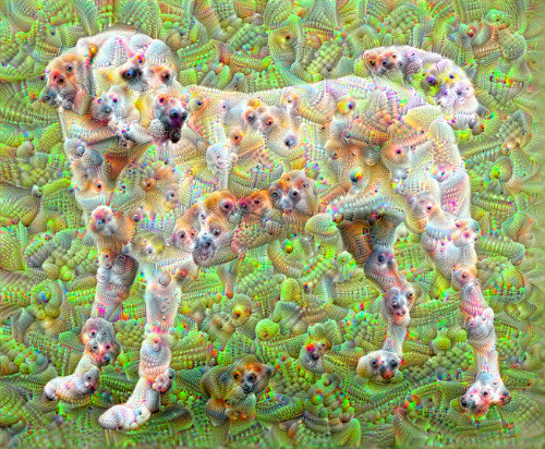즉 강아지 사진에 신경망이 학습한 패턴을 입혀서 시각화할 수 있습니다.