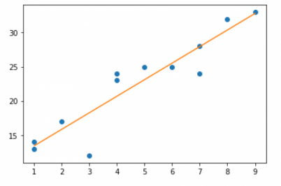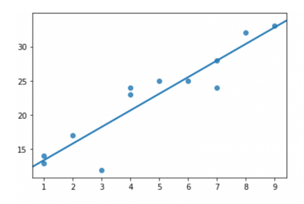 사실 seaborm 패키지의 regplot을 사용하면 코드 한 줄로 쉽게 그릴 수도 있습니다.