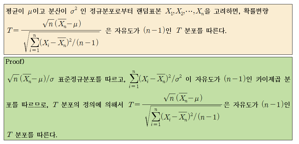 T 분포 역시 F 분포와 마찬가지로 확률밀도함수를 외울 필요는 없지만, 정의는 알아두도록 합시다.
