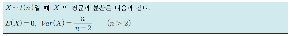 다음으로, T 분포의 평균과 분산을 알아봅시다.