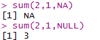 이 때 NA 와 NULL에는 연산에서 차이가 있는데, NA가 존재하면 연산이 불가능하지만 NULL의 경우 연산시 배제되고 연산이 됩니다.