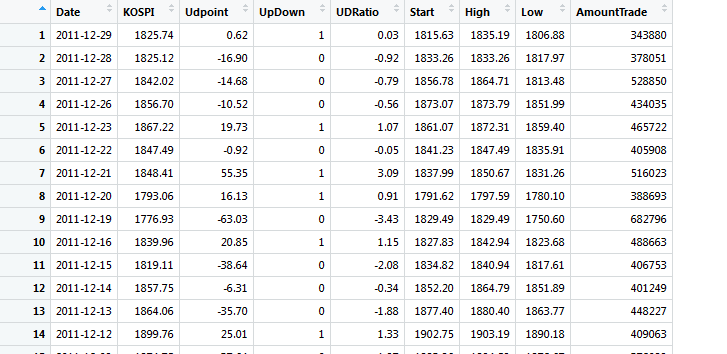 stock <- read.csv("KOSPI2011y.csv", header = TRUE)