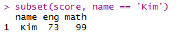 eng <- data.frame(name = c("Lee", "Choi", "Park", "Kim"), eng = c(93,73,83,73))
