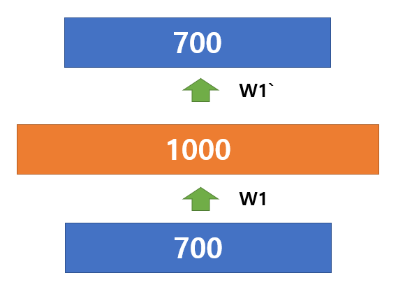 그 W1을 기존 네트워크의 W1으로 사용하는 것입니다. 참고로 이 때, W1` 은 W1의 transpose한 matrix입니다.