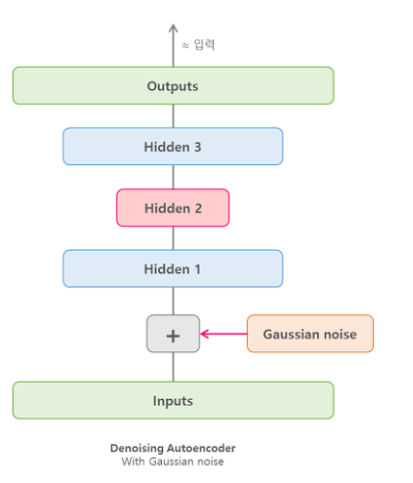 Denoising AutoEncoder는 입력층에서 Hidden layer로 갈 때, Noise를 추가한 것입니다.