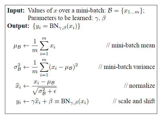 우선 mini-batch를 이용하여 데이터를 정규화 시켜줍니다. 그리고 정규화로 끝나는 것이 아니라, 정규화 된 값을 원래대로 되돌릴 수 있는 gamma와 beta값 또한 얻을 수 있습니다.
