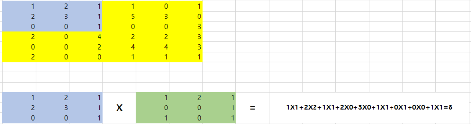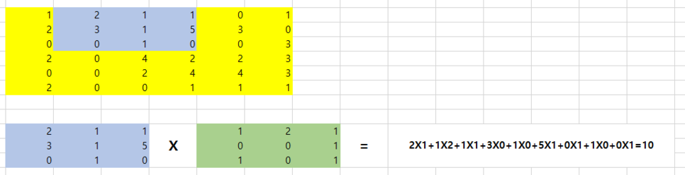 그리고 이 행렬을 사전에 정해준 칸만큼 이동을 해서 반복을 하면 됩니다. 이를 움직이는 칸의 수를 Stride라고 하는데, 저희는 1칸이라고 하고 진행해보도록 합시다.