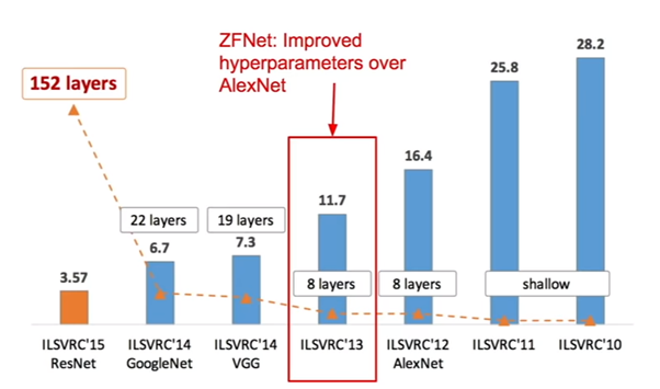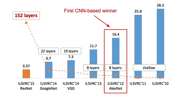 이는 이전 수상작들은 shallow network의 였던 반면 AlexNet은 8개의 층을 가지기 때문으로 생각할 수 있습니다.